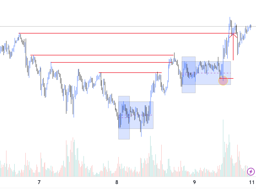 En la siguiente imagen puedes ver en TF de 5 minutos la estructura de re-acumulación y puedes ver como la salida de la estructura se realizó con la pauta “volumen, no volumen, volumen” por la tanto la salida era correcta.