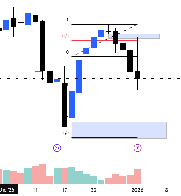 En grafico diario tengo un PO3 bajista que me completa el lado de la venta y ese debería ser su objetivo final.